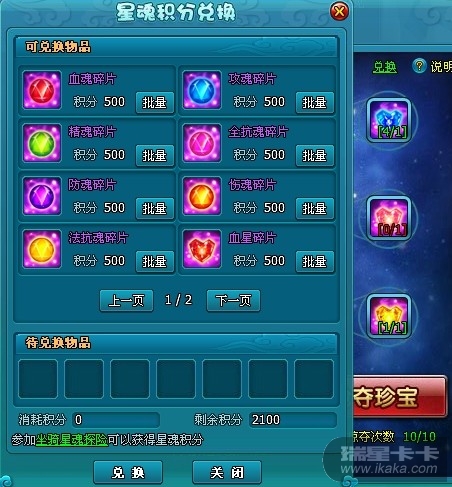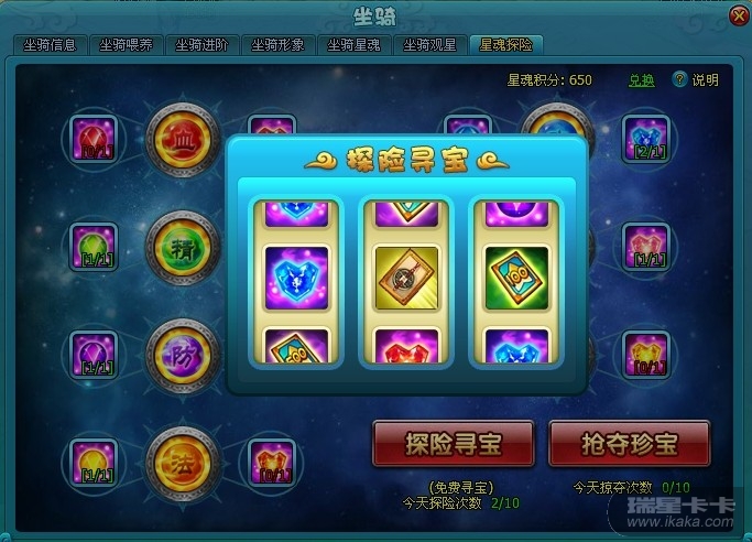 ④寻宝寻出的星碎片和魂碎片会自动落入面板中相应格子里,星魂积分卡会自动累积到星魂积分,其他道具会落入背包中。