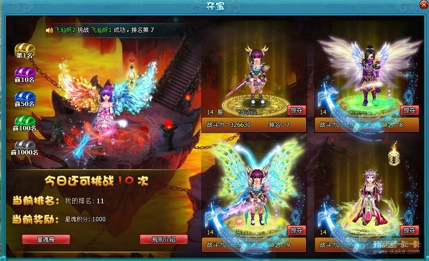 次机会掠夺星魂榜上的玩家,掠夺成功即可获得星魂碎片(邮件发放)和大量星魂积分(可兑换星魂碎片),掠夺失败也可获得星魂积分,掠夺排名越前的玩家获得奖励越高。