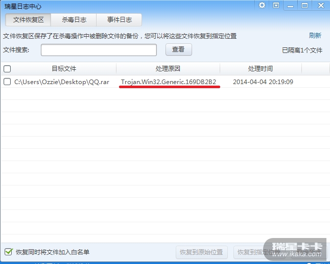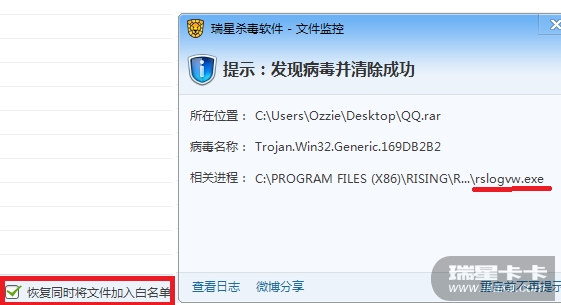 2、从隔离区恢复时,已勾选“同时加入白名单” 但还是被杀掉