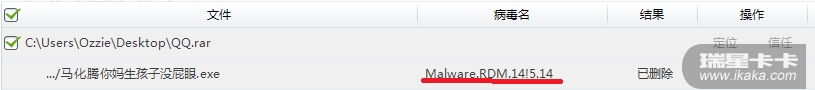 1、测试病毒样本时 瑞星的监控能检测到病毒 但经过五十余次的删除操作(详见附件log.rar中的日志log.db)才将这一病毒文件删除