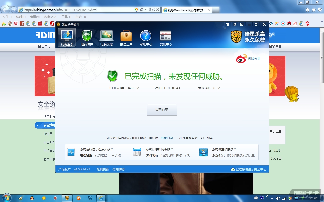 楼主的操作系统类型是什么?32位还是64位的?瑞星杀毒软件版本是多少?