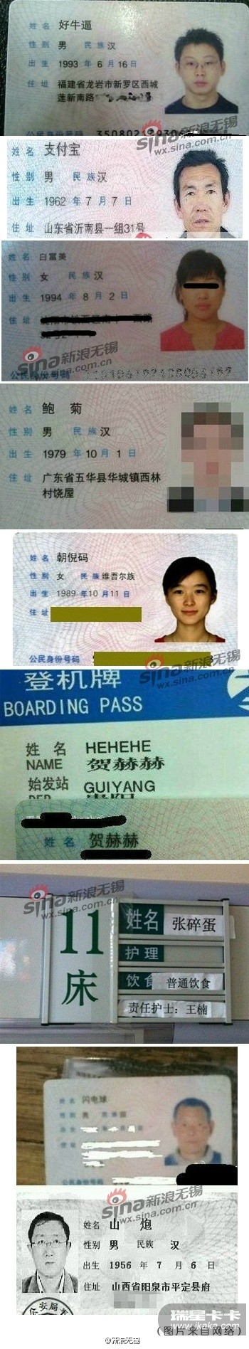 有网友说他的他爸爸叫赵月亮,他爷爷叫赵太阳。 还有一个亲戚,她爸爸姓左,妈妈姓钟,结果给她起名左中右 。还有史珍香,范建,刘产,范桶,秦寿生,庞光,魏生津,江苏一郎,何花仙子。。。那些年,你听到过最奇葩的名字是什么!