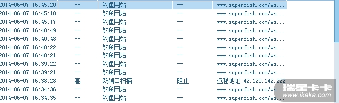 请把瑞星日志db文件导出,压缩发来。日志导出方法:鼠标右键托盘处防火墙图标>>查看日志,功能菜单处选择备份日志,把生成的db文件压缩发来。