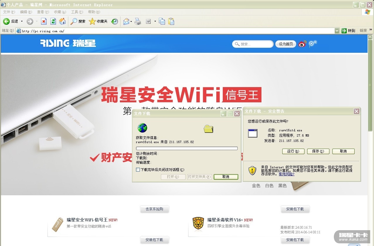 如图,虽然是在瑞星的官网点击的下载,但实际上,安装包的 发送者 并非瑞星,而是网络服务商,正如上图中的发送者是 上海有线通 ,由此下载的瑞星也并非瑞星官方提供的版本。