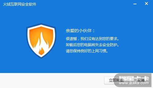 看看火绒的卸载界面,根本没有任何卸载挽留,让人看起来很舒服,不像瑞星的卸载尤其繁琐,感觉跟搞促销一样。。。