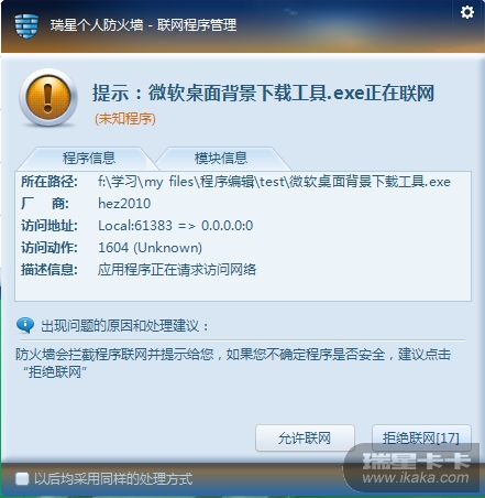 程序刚开始联网的时候瑞星提示未知,我设置允许后瑞星又告诉我危险。。。这不是误导我呢么。。。