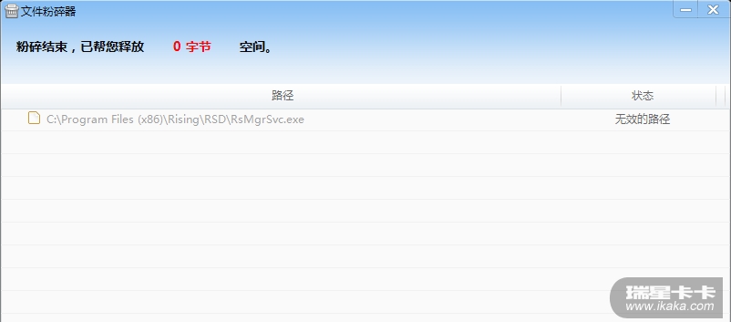 瑞星文件粉碎弱爆了,干掉popwndexe.exe之后,发现RsMgrSvc.exe也不是个好东西,准备使用瑞星粉碎程序,结果,呵呵,竟然提示无效路径。