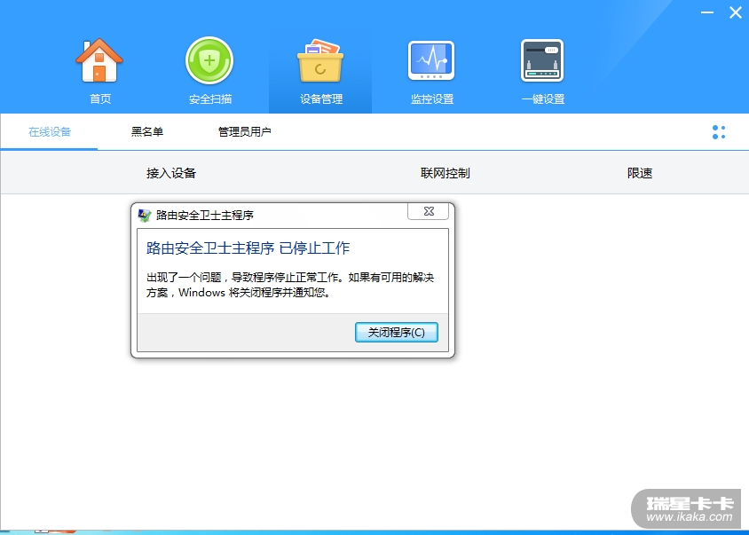 最新版已解决,请把瑞星路由安全卫士升级到01.00.00.18版本观察。
