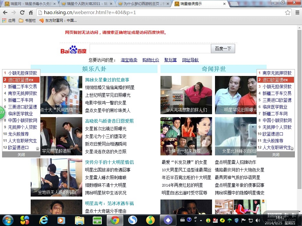 为什么梦幻西游的主页,我一打开就显示瑞星错误,我设置了该主页为防火墙的白名单后,结果还是显示我访问的页面不存在,不受瑞星保护的搜狗浏览器没这现象