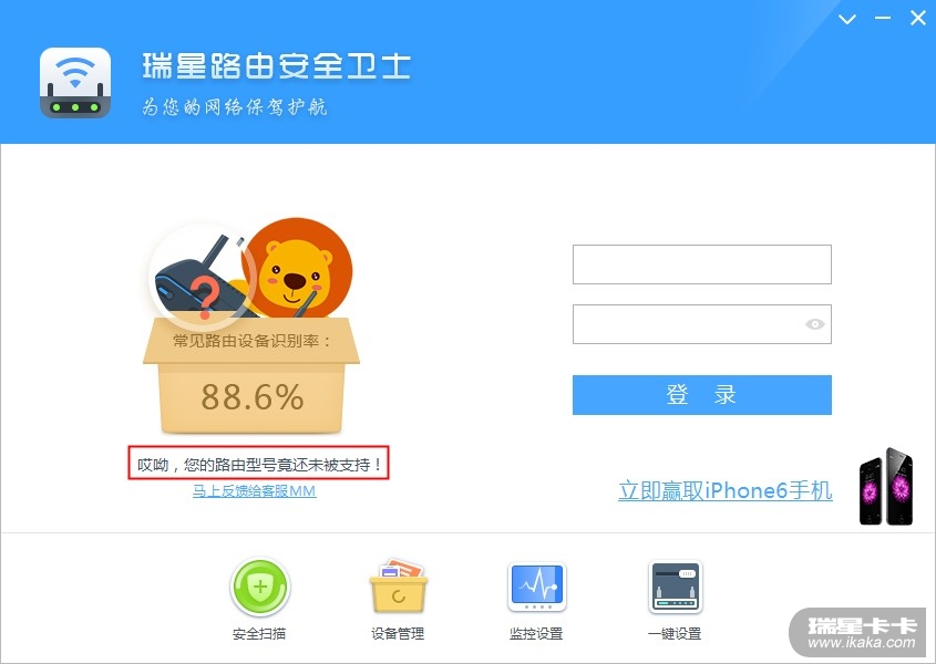 您是希望在登录瑞星路由安全卫士的时候,增加一个弹窗提示“不支持*****路由器”?