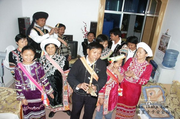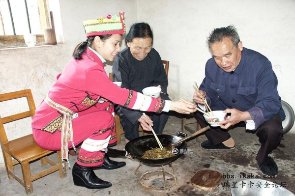 仫佬族家庭全家福,广西罗城仫佬族自治县,仫佬族的地锅。