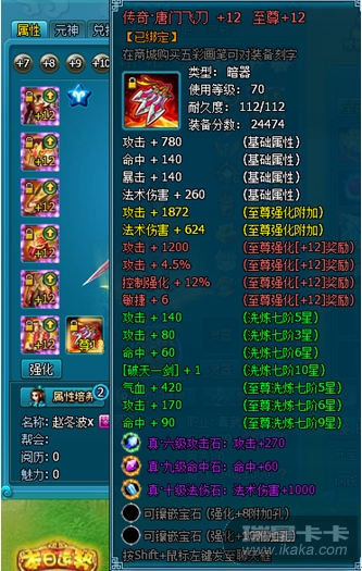装备暗器后大幅提升人物攻击、法伤、暴击、命中、敏捷、控制加强等属性,并且可以对暗器进行强化、至尊强化、洗炼、至尊洗炼、镶嵌宝石、橙装精炼、暗金精炼等操作来提升装备属性!