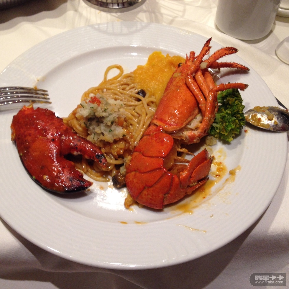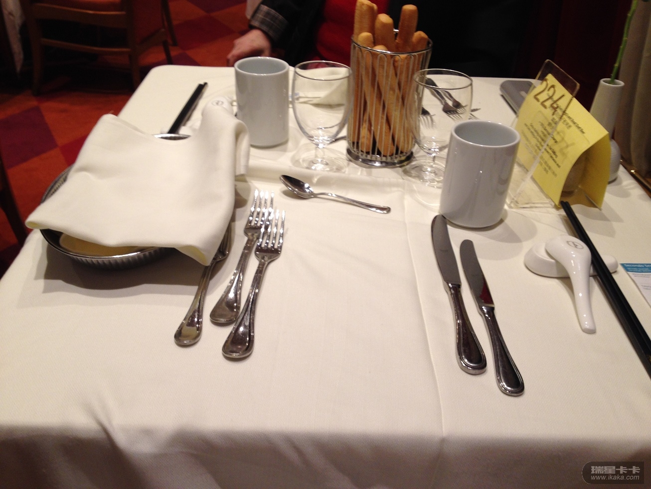 每天一顿的正餐是晚餐,正餐指定餐厅及餐席,自上船至离船不变。我的正餐指定在序曲餐厅224席,临窗双人席(上船时床上放的一个小小纸卡片就是餐席证)。