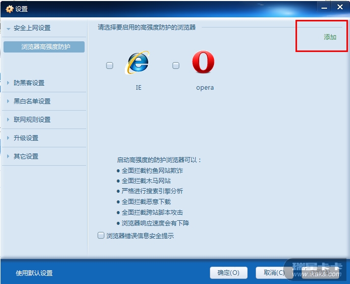 您是希望在浏览器高强度防护中添加支持吗?请手动添加UC浏览器电脑版即可。