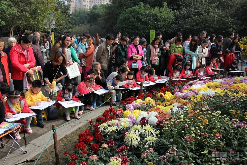 菊花展上的小画家!
