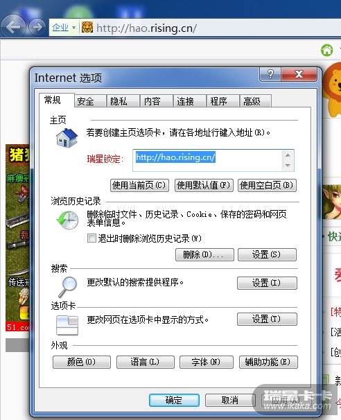 然后打开浏览器看主页显示也是瑞星锁定,无法修改