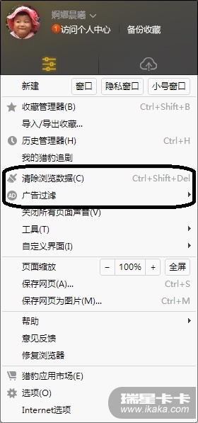 操作:查看瑞星设置,与猎豹浏览器作比较!!!