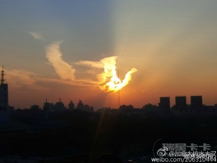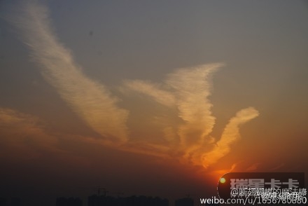 有多名网友拍到,今天北京天空出现了火凤凰状晚霞,真真是美翻了!据了解,凤凰(拉丁学名Phoenix Red)是中国古代传说中的百鸟之王,与龙同为汉族民族图腾。不过,也有吃货主义者风范的网友:这明明就是烧鸡。。。