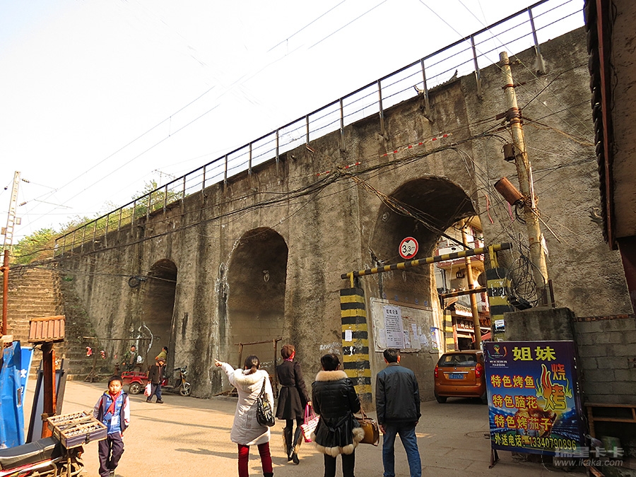 四川的第一条铁路成渝铁路就从五凤溪古镇通过,这是铁路桥,上面就是成渝铁路。