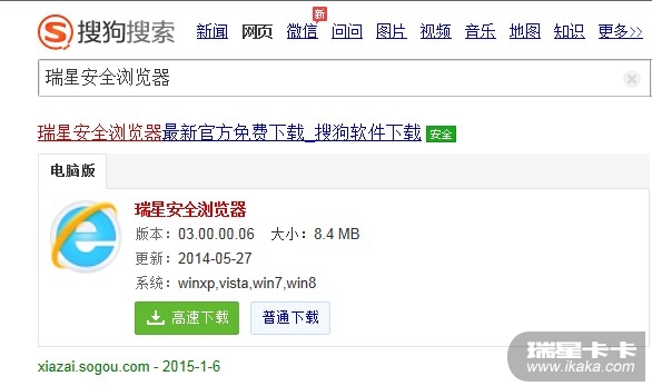 在搜狗搜索工具栏中输入“瑞星安全浏览器”时,发现版本很低,建议相关工作人员对其进行更新。谢谢!(如图所示)
