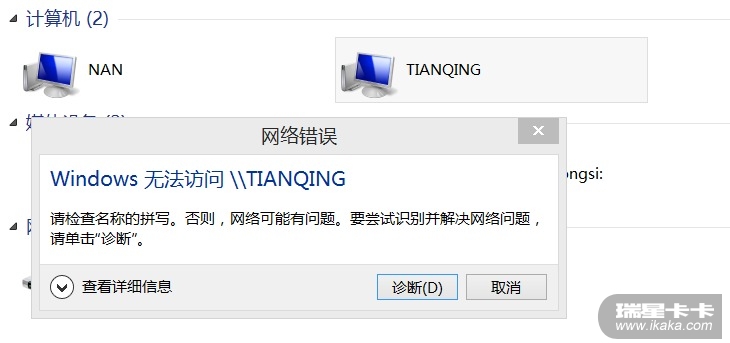 两台都是8.1,我的是"NAN"电脑,共享的东西"TIANQING"电脑可以看到,但是"TIANQING"电脑共享的东西,我的"NAN"电脑就显示这个。