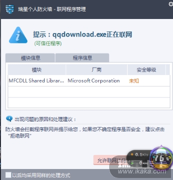 请您发个防火墙提示的截图看看。您认为防火墙显示成什么?