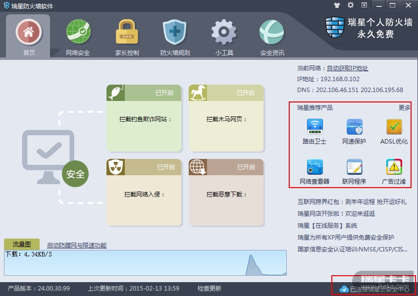 瑞星个人防火墙V16