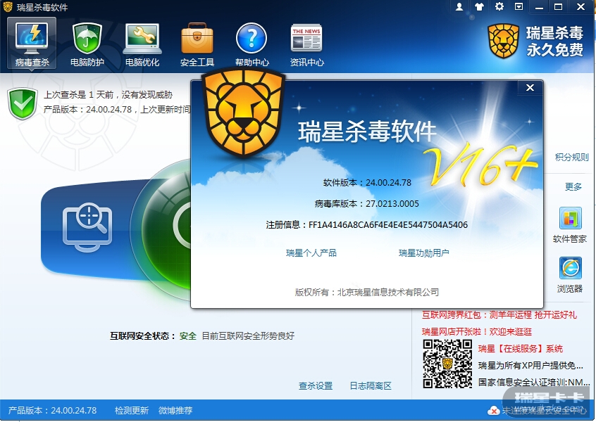 查看完整版本: 卡卡上网助手安全体系监控不支持瑞星V16+