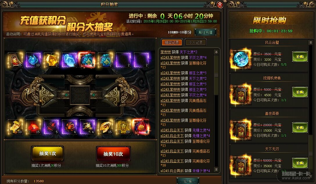 查看完整版本: 【风云无双】2.14-2.28积分商城抽奖活动