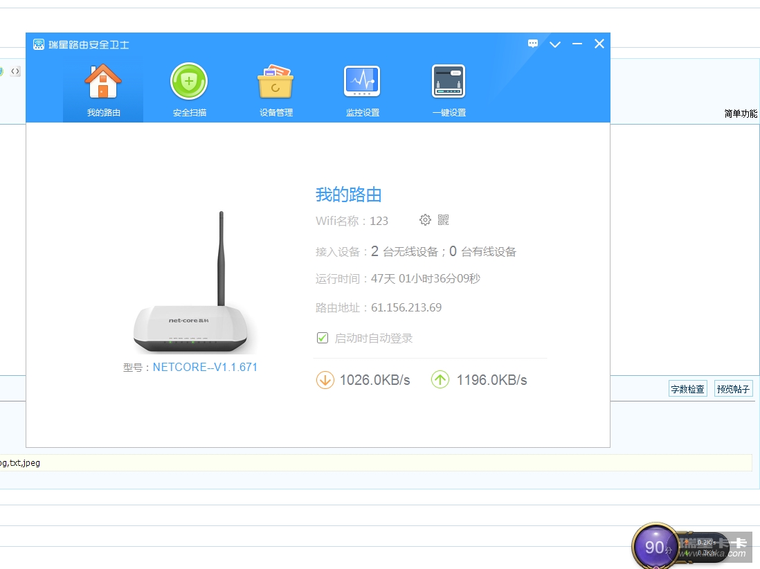 请楼主把瑞星路由安全卫士主界面启动时自动登录的勾选去掉,重新登录试试。