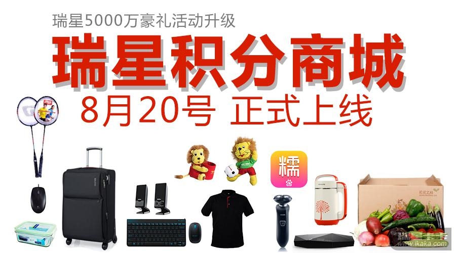 8月20日,瑞星5000万豪礼活动升级为瑞星积分商城,同时,时值七夕佳节,瑞星“七夕礼物不花钱 海量礼品重装上阵”活动也在当天上线(活动地址:http://www.rising.com.cn/2015/77///)。配合本次七夕活动,升级后的瑞星积分商城将上架沱沱公社蔬菜礼盒、糯米券、PHILIPS 锐锋剃须刀、九阳豆浆机等礼品,此外,活动期间还将每天推出一款神秘好礼,在中午12点限时抢兑,用户可通过瑞星杀毒软件V16+客户端登陆兑换。