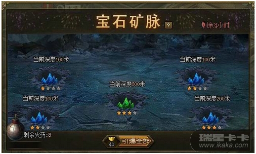 1.每炸一次矿脉,可获得一定数量的宝石奖励 , 同时深度增加