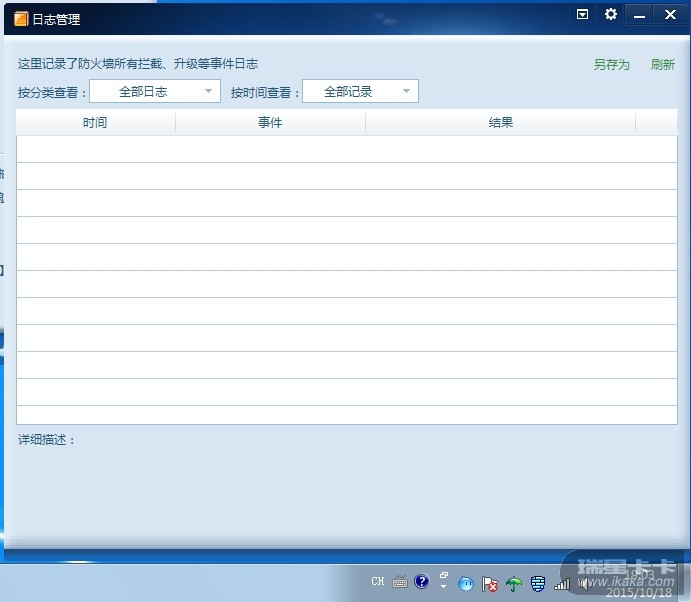 查看瑞星防火墙日志时,发现日志有延长显示时间的问题。一开始以为这是BUG,反复测试几次以后。有延迟显示的现象,不知道这是不是一个BUG.(如图所示)