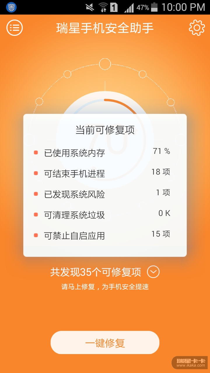 你体检都发现病毒了,点一键修复为啥不给我清掉。。。建议:如果手机root了,直接自动卸载,没有root的话弹出卸载提示框。