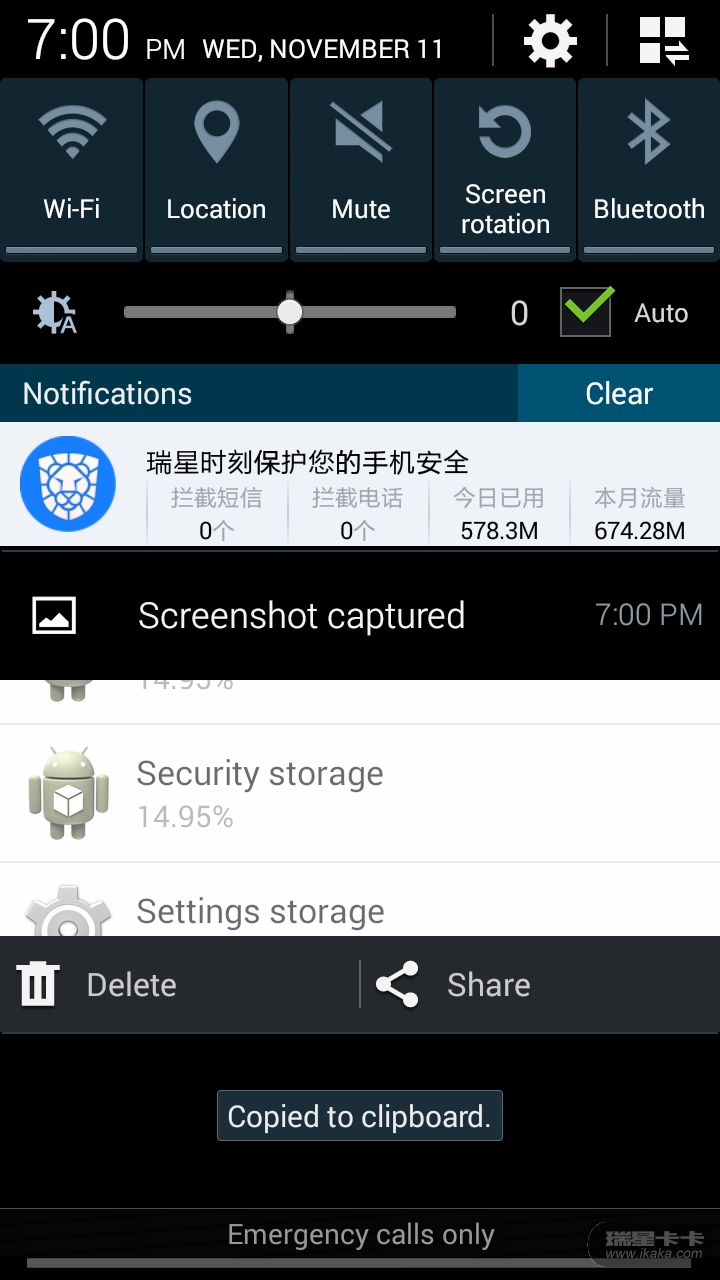 Android 4.4.4  瑞星5.21.03 三星I9300i