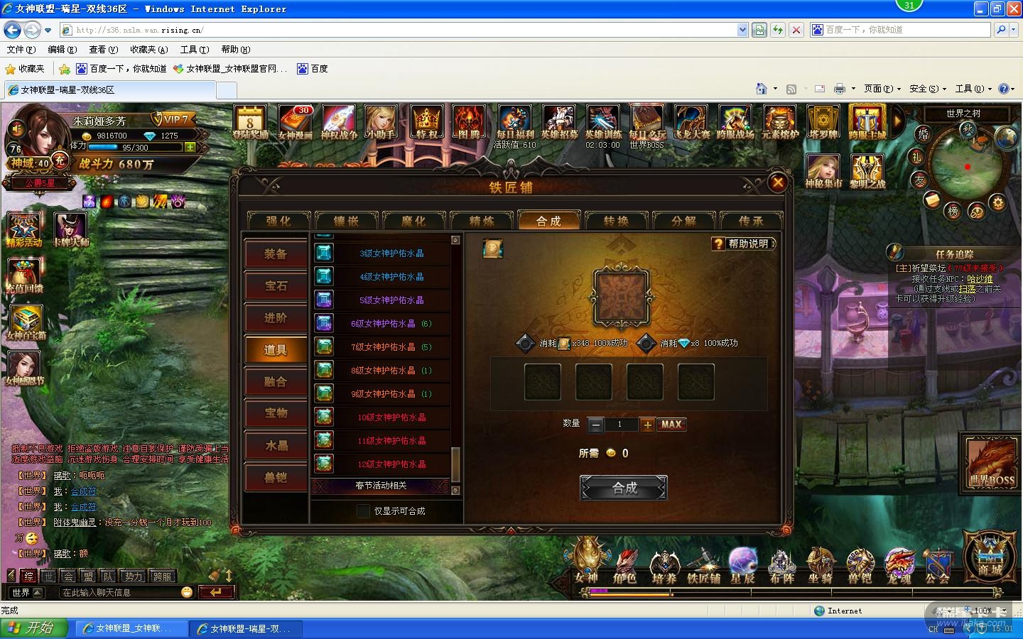 但是,本人同一ID在9区就可以合成,合成女神护佑水晶的选项有13,14,15,16级的,证明是新区的问题,请尽快解决。谢谢