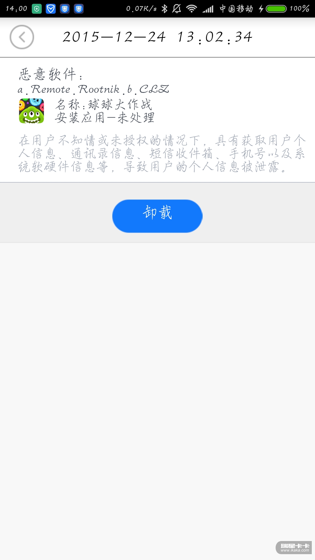 瑞星手机版,最新病毒库,查杀这个软件有恶意行为,个人觉得是误报
