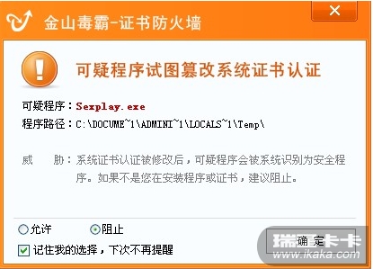 这是 病毒试图将签名文件 注入系统的动作,被拦截了