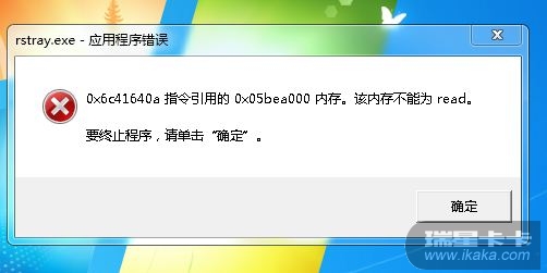 今天开机 电脑显示 瑞星v16 杀毒软件 有错误 rstray.exe _ 应用程序错误 0x6b71640a 指令引用 0x0422a000内存 该内存不能为 read 要终止程序 . 请单击确定. 电脑看不见 瑞星监控的 小绿伞 修复一次 也是这样. 删除 重新安装了 v 17 后开机也是这样. 昨天还是正常关机的