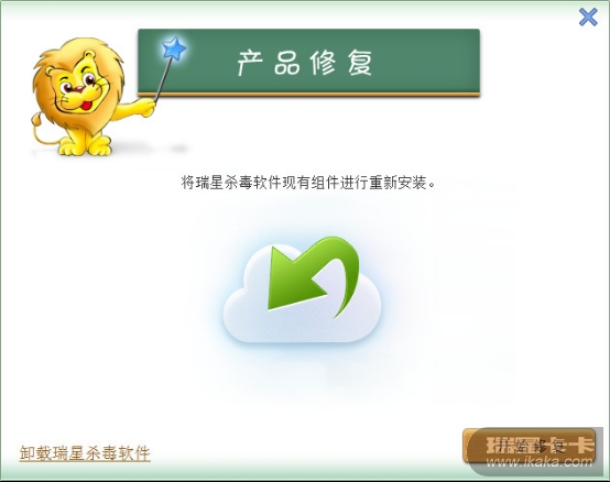 此时会弹出产品修复界面选择界面中的【卸载瑞星杀毒软件】