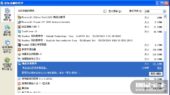 瑞星工程师16回复:使用自带的卸载程序是可以正常卸载的,但是用第三方软件可能会导致卸载异常。