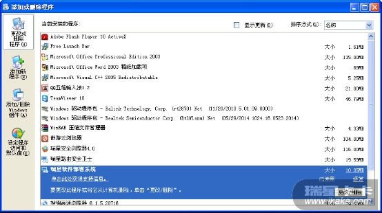 由于现在免费杀毒软件非常多,且各自有不同特点,考虑到用户的喜好不同,瑞星杀毒软件是随时可以卸载的,具体卸载方法如下: