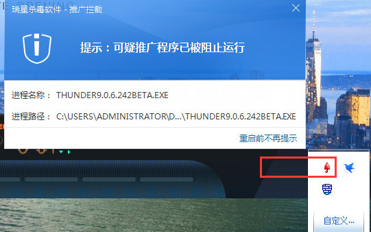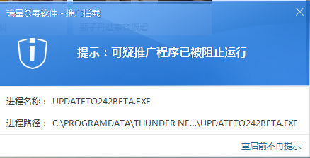 然后 手动升级到最新版 ,我运行 安装包(桌面上), 这时 神奇的一幕出现了 ,瑞星居然还是拦截 安装包