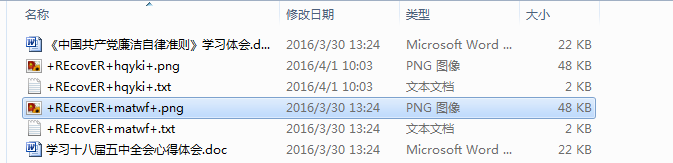 大侠们或瑞星的高手们给个解决方法,拜谢了!基本上每个文件夹中都自动生成了四个文件,一个是+REcovER+hqyki+.png,一个是+REcovER+hqyki+.txt,第三个是+REcovER+matwf+.PNG,第四个是+REcovER+matwf+.txt。如下图: