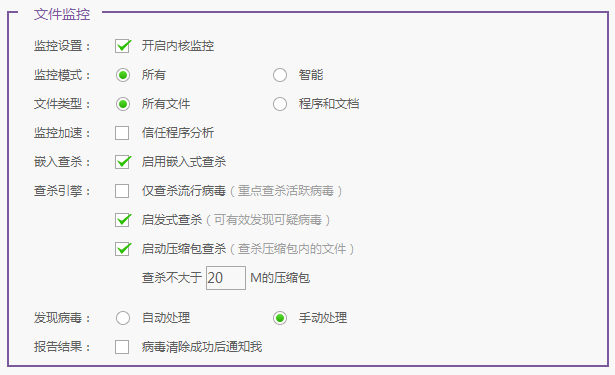 请提供“已设置进入压缩包扫描并且PE文件小于20M”的截图看看。