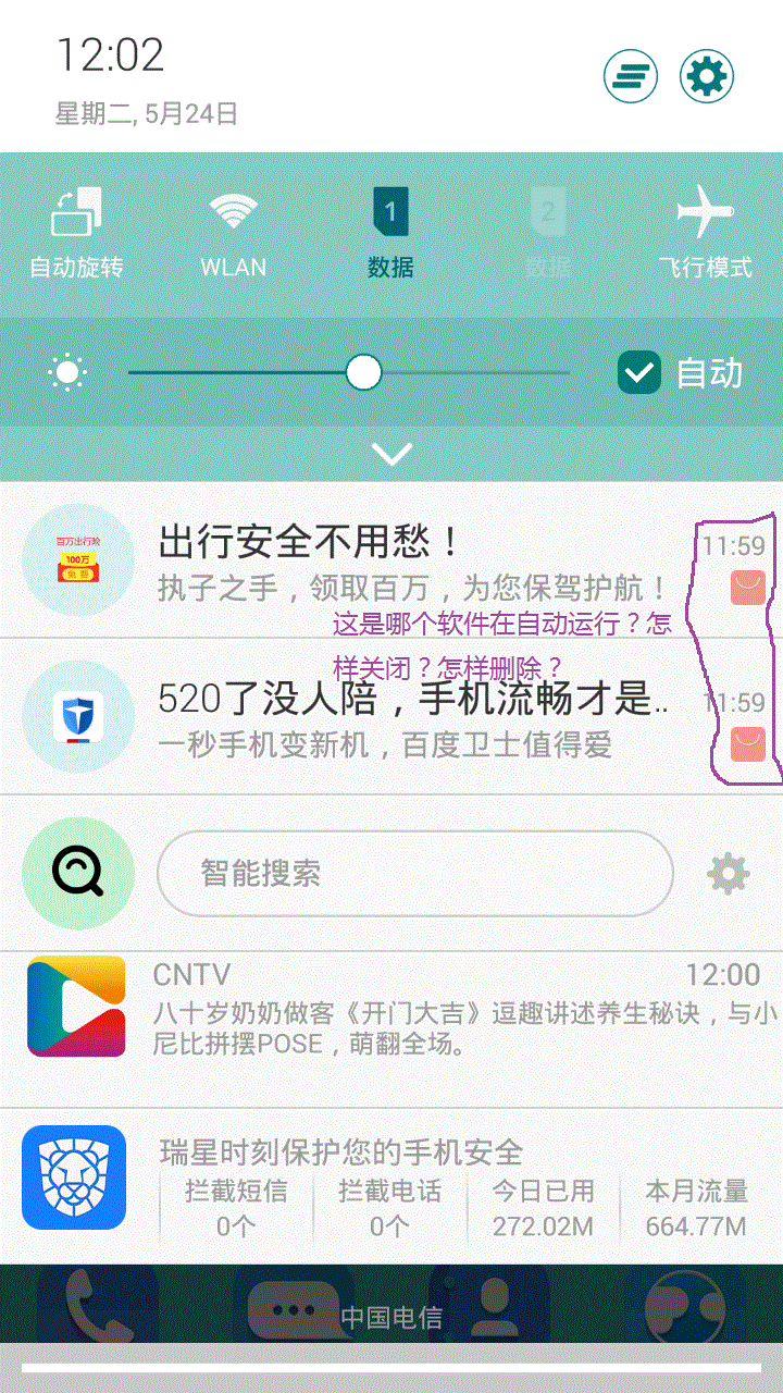 从正规途径购买的中兴(ZTE)星星2号(G720C)电信4G手机(Android 4.4.4,不支持储存卡),每隔几天,只要一上网,就会自动出现各种软件的推荐信息。