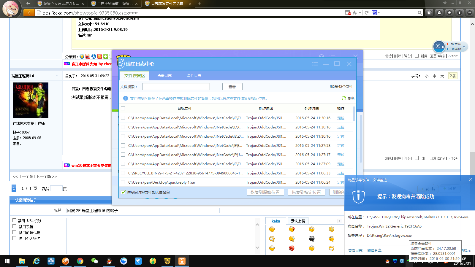 已替换工程师提供的相应文件,报毒文件还原区不在出现,未被隔离文件,请核实。