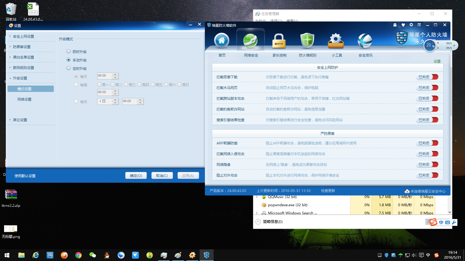 看了一下您的日志,日志在5月31日的上午,的确出现了多次的防火墙升级,但是升级的方式并不是后台升级的,您再确认一下,您在那天没有手动点击过升级吗?还有就是6月6日的时候,您开机发现有后台升级,然后您就卸载了防火墙,但是6月6日开机的升级并不是防火墙的升级,而是您机器上的rising安全路由。