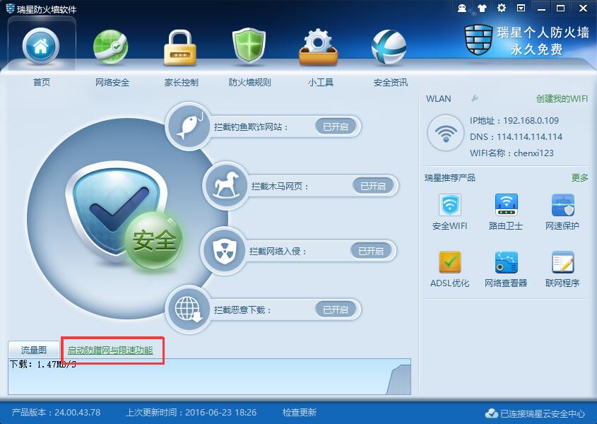 点击 防火墙的 防蹭网 功能 ,发现 安装的是 瑞星安全 WiFi 是不是 链接错了???