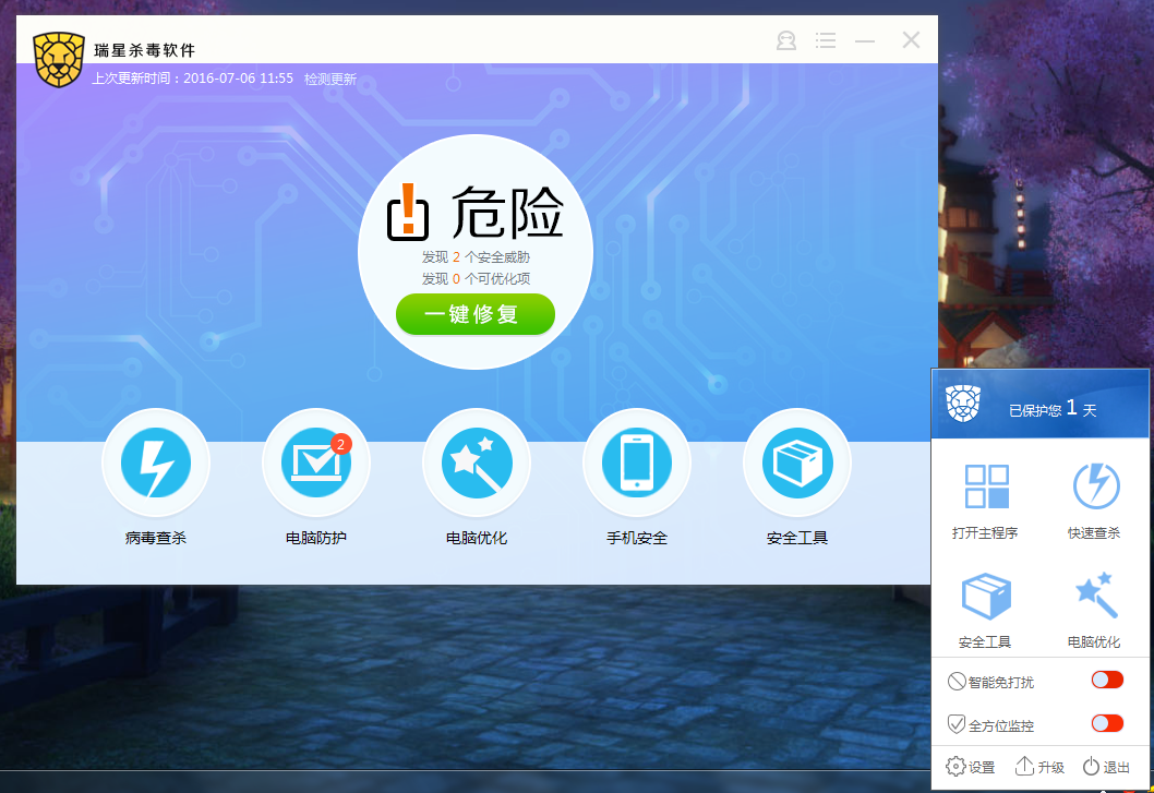1、提示安全,小伞黄色,右击,全方位监控没有开启